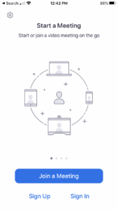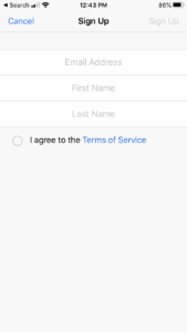 Once you have installed the app, log in (if you already have an account) or click to set up a free account. Both options are on this next screen (“Sign Up” or “Sign In”):