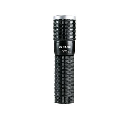 Flashlight, aluminum, black, LED with zoom lens. Price per each.