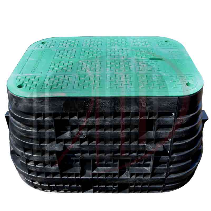 Hand Hole Assembly, HDPE with HDPE Cover, 24″ x 36″ 24″ Depth, Light Duty, 3,000 lb Rating, No Logo, One Piece Cover, Flared Wall, Custom Green EZ Lock “T” Cover, Carson. Price Per Each.