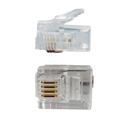 Category 3, RJ11 Modular, 6P 4C, 50 Micro-Inches Gold Plated. 100 per Pack. Price per Pack.