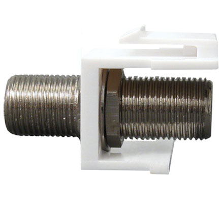 Connector, barrel, Female/Female, F81 Style, UL Listed, Snap in Keystone. Price per Each.