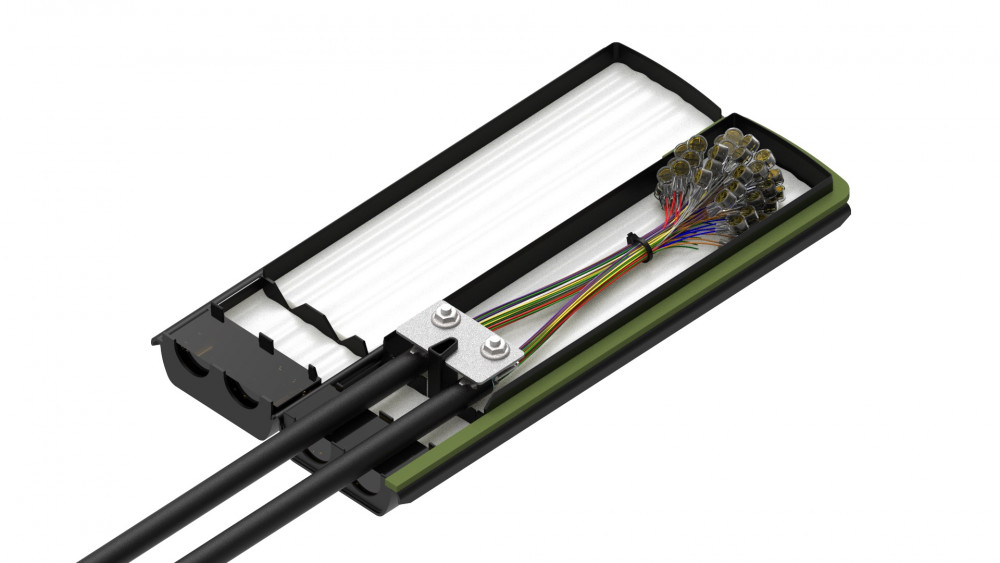 BLACK-JACK Closure, Inline 25 Pair Cound of Cable, 4 Ports, With Gel Sealant, 16.25″ x 3.5″ x 3″, Price Per Ea