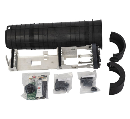 Dome Splice Closure, 350, 096f/288f ribbon max, 4.5″ x 5.8″ x 21″, 4 Round Ports, Standard All Dielectric Tray, Isolated Ground End Plate, Price Ea