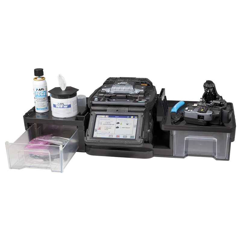 90S Fusion Splicer, CT50 Cleaver, ADC-20 AC Adapter, ACC-14 AC Cord, BTR-15 Battery, ELCT2-16B Spare Electrodes (pair), Sheath Clamps, SP-03 Fiber Holder Set Plates, USB-01 Cable, Alcohol Dispenser, Screwdriver, Splicer Carrying Strap, Quick Reference Guide, TS-03 Tripod Screw, Work Tray J-Plate, SS03 Single Fiber Stripper and CC39 Transit Case with Carrying Strap. Price per kit.